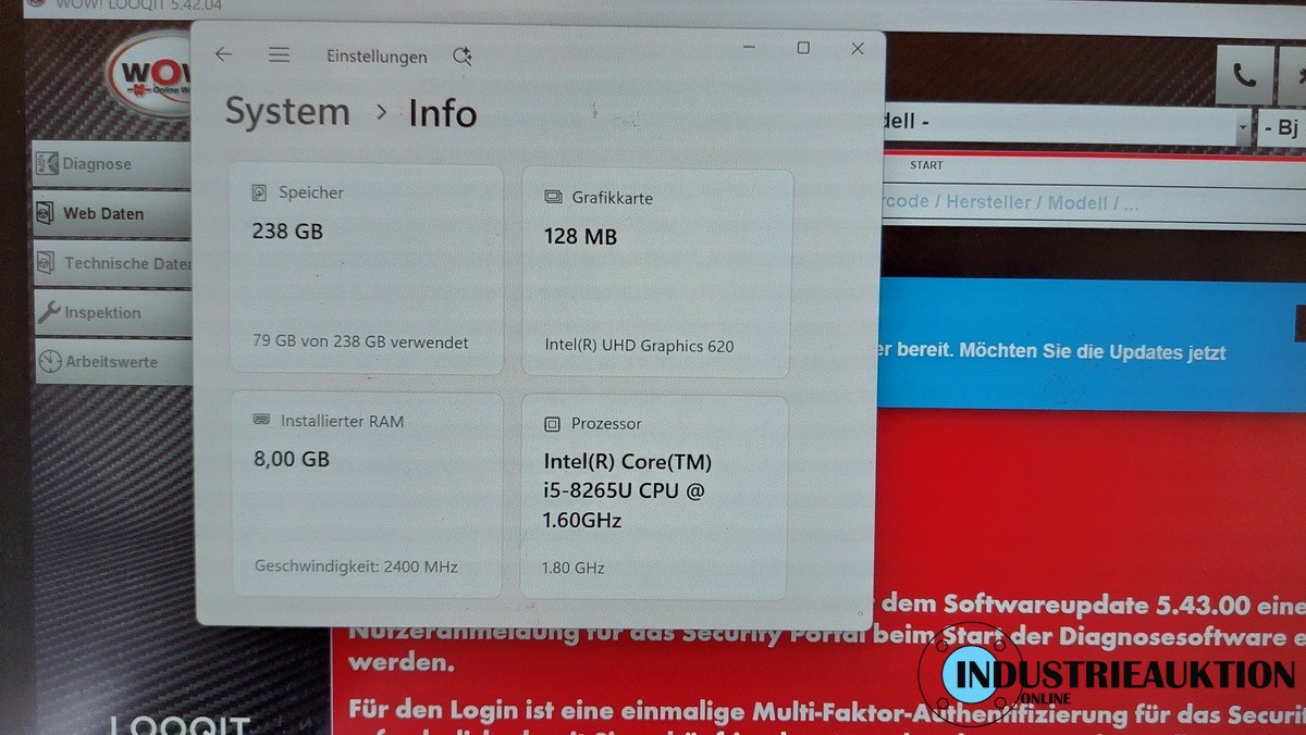 WÜRTH KFZ-Diagnosesystem WOW! iQ350, Tablet GETAC F110, i5-8265U @1,60 GHz, 8 GB RAM, 250 GB, WIN 11 Pro, Diagnosesoftware LOOQIT-Expert-1M, LOOQER, Funktion geprüft