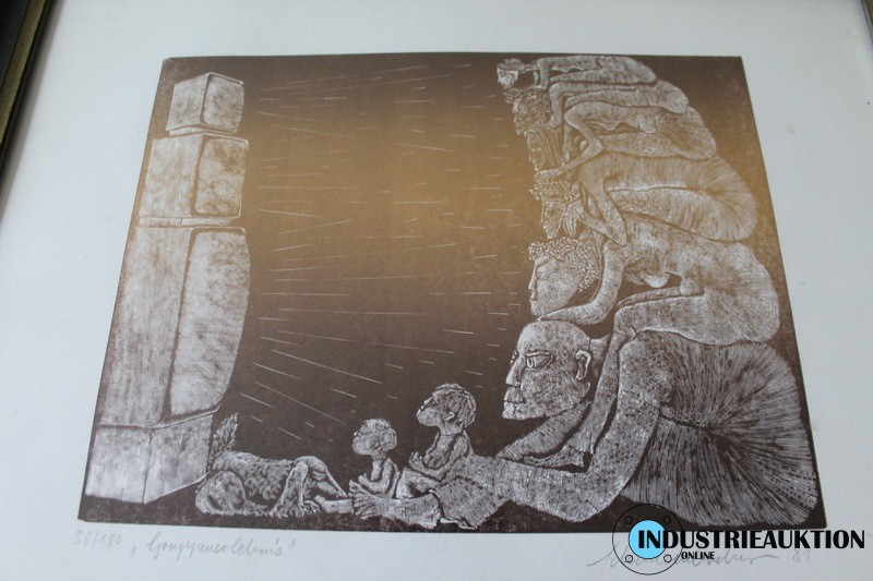 Bild Robert Schanzenbacher "Gruppenerlebnis" 38/180, ca. 24x18,5 cm, von 1981
