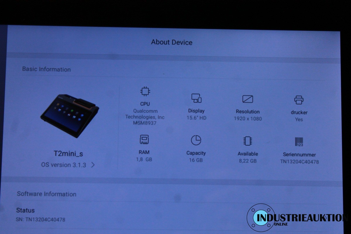 Kassensystm SUNMI T2 mini s, S/N TN13204C40478, 15,6" Display, Qualcomm Snapdragon Octa-Core CPU, 2GR RAM, 16GB Speicher, Android, Bondrucker, bargeldlosen Zahlen möglich, NFC und QR, Anschlüsse 4x USB, LAN, Kassenschublade, RJ11