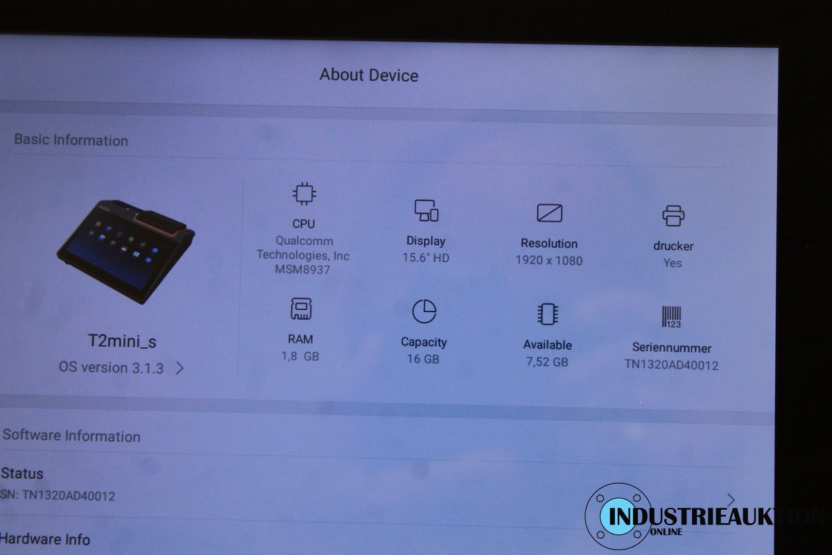 KKassensystm SUNMI T2 mini s, S/N TN1320AD40012, 15,6" Display, Qualcomm Snapdragon Octa-Core CPU, 2GR RAM, 16GB Speicher, Android, Bondrucker, bargeldlosen Zahlen möglich, NFC und QR^, Anschlüsse 4x USB, LAN, Kassenschublade defekt, RJ11