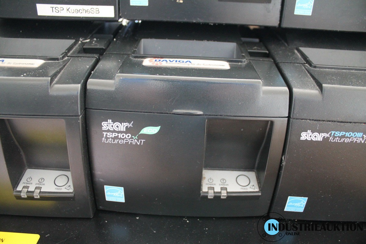 POS-Kassensystem DAVIGA, best. aus 8 Touch-Terminals QX1900, Celeron J1900, 2 Ghz, 4GB RAM, RFID-Lesegerät, 4 Kundendisplays, 4 Kassenschubladen, 9 Bondrucker STAR TSP100, ohne Software, angeschafft 2020