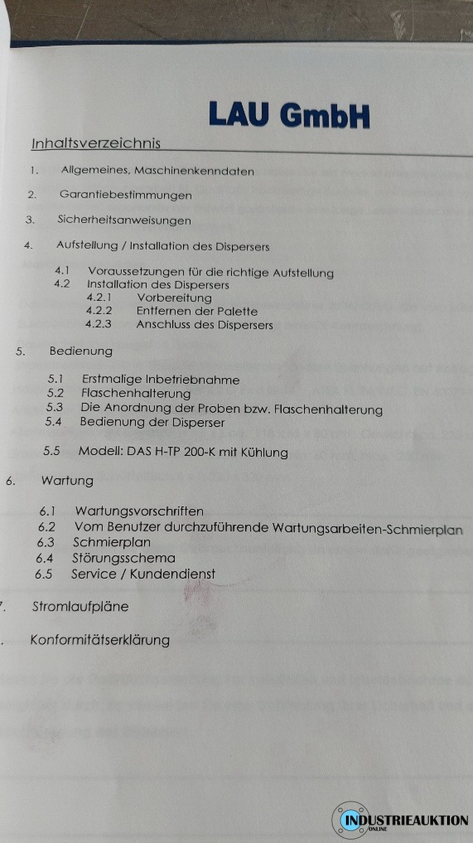 Disperser DAS H-TP 200-K, Bj. 16, System LAU, mit Handeinspannung, Motor 230/400V, regelbar über Frequenzumrichter, Flaschenhalterung 32x30 cm. Der Disperser DAS 200 bietet dabei den Vorteil, möglichst viele Proben bis zu einem Gesamtgewicht von 20 kg unter gleichen technischen Voraussetzungen zu prüfen, so daß eine große Anzahl von Reihenversuchen unter gleichen Bedingungen durchgeführt und ausgewertet werden kann.