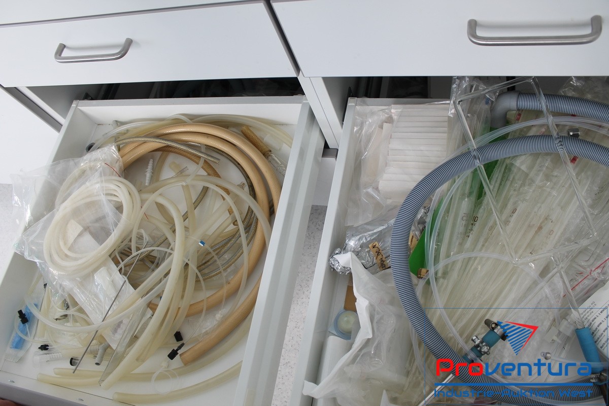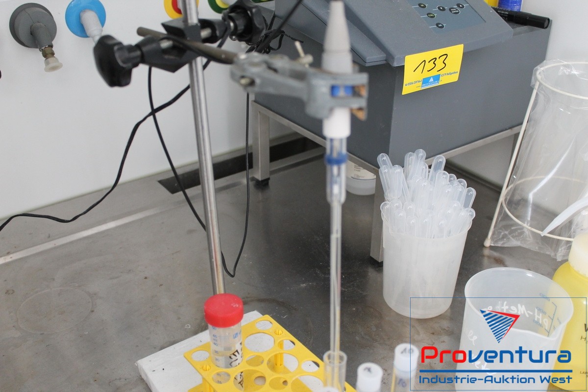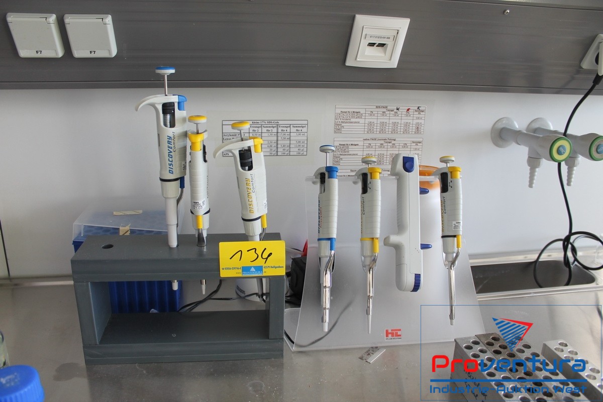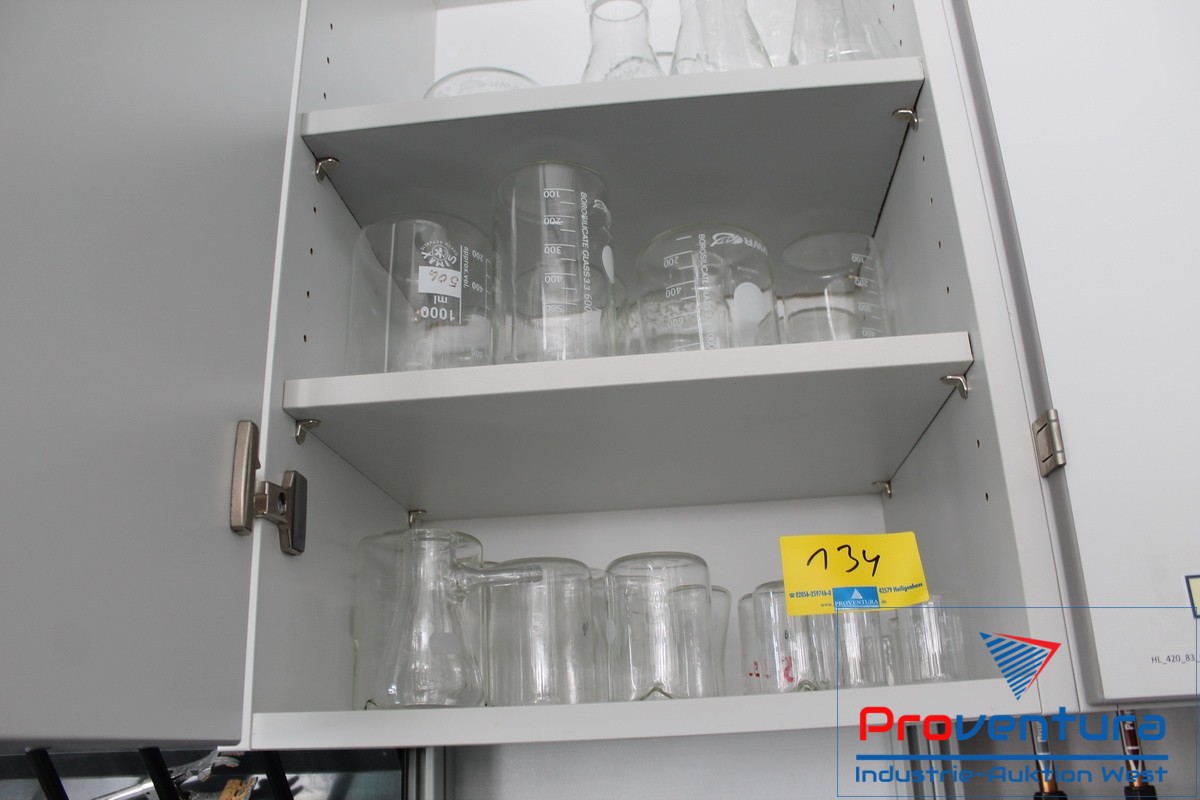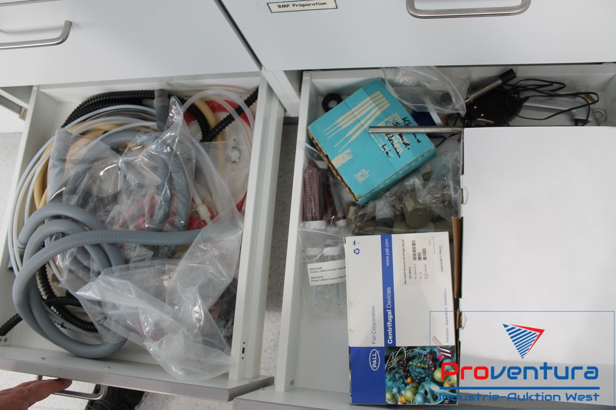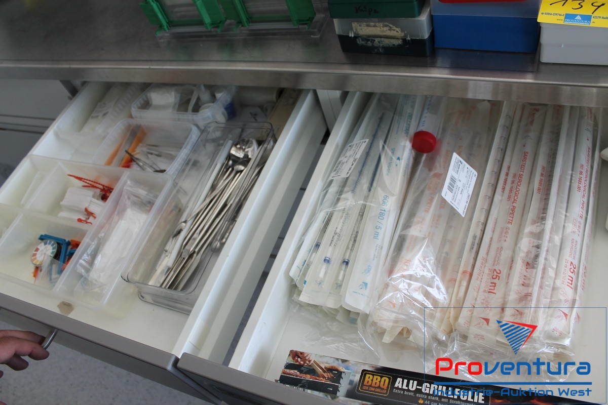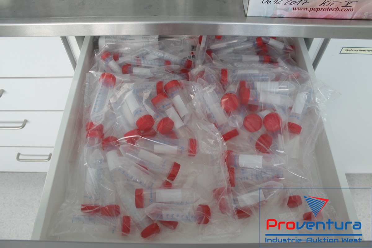 Laborausstattung, Glasflaschen, Monovetten, Erlenmeyerkolben, Mikropipetten, siehe Fotos