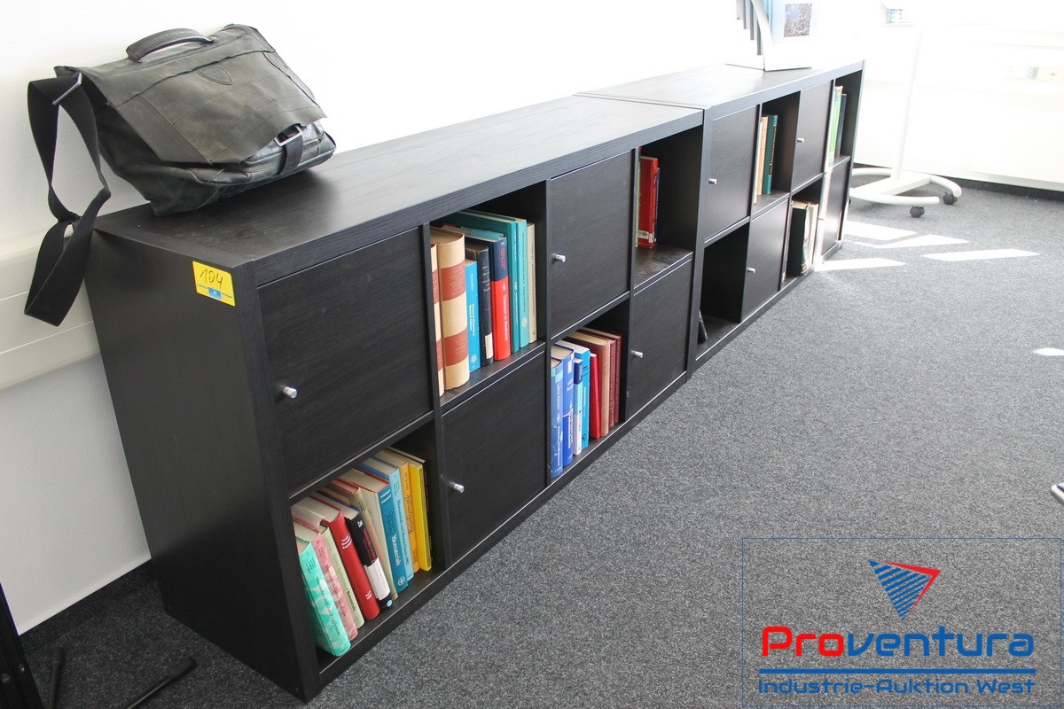 Schränke IKEA Kallax, 2 St., schwarz, 2x4 Fächer, teilw. mit Drehtüren