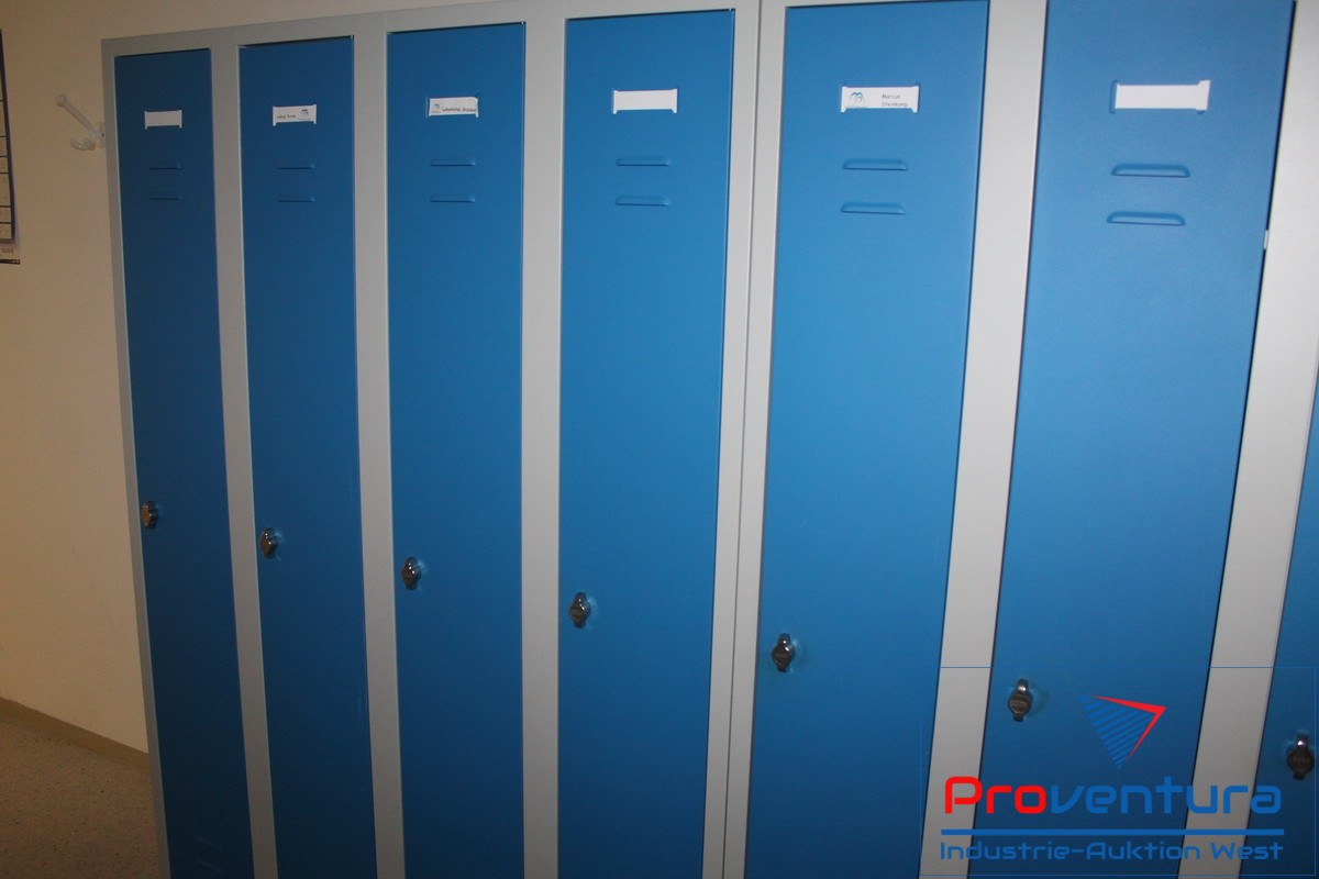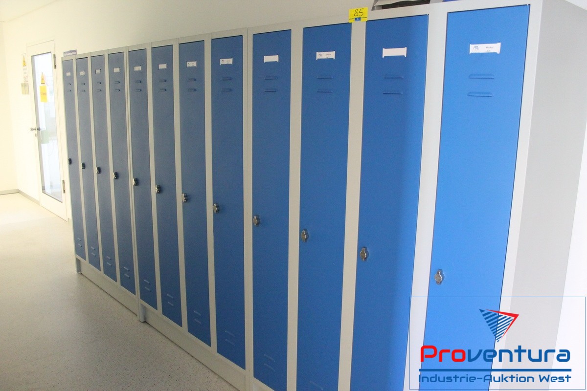 Spinde, 3 St., Anschaffung 2008, jeweils 4-türig, lichtgrau mit blauen Türen