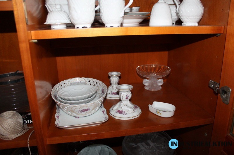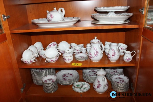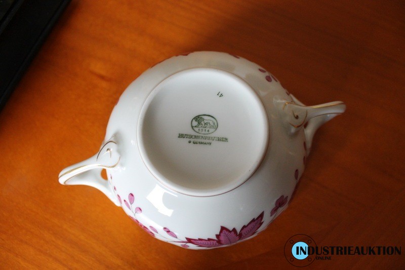 Geschirrset von HUTSCHENREUTHER "Maria Theresia Linderhof" mit flachen Tellern, tiefen Tellern, Dessertteller, Dessertschalen, Untertassen, Tassen, Suppentassen, Kaffeekannen, Milchkännchen, Fleischplatte, Eierbecher, Mokkatassen, Suppenterrine, Schüsseln, Sauciere, Kerzenständer