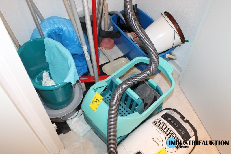 Putzwagen und diverse Besen, Abzieher, Teleskopbesen, etc.
