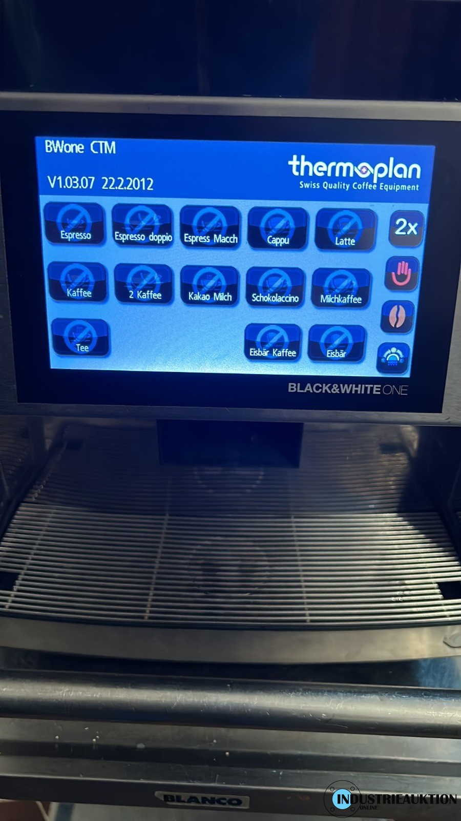 Thermoplan Black & White One CTM2, ein beeindruckender Kaffeevollautomat mit integriertem Milchkühlschrank. Trotz seines Alters von etwa 10 Jahren hat er nur 36.000 Tassen zubereitet und ist in hervorragendem Zustand.