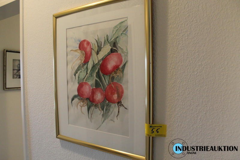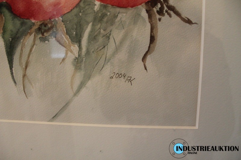Wandbild "Hagebutte" von 2004, Künstler AK oder FK, ca. 50x70 cm