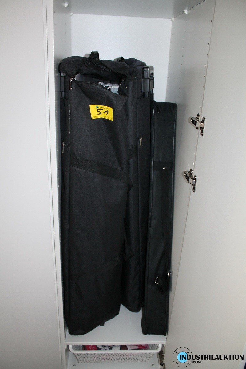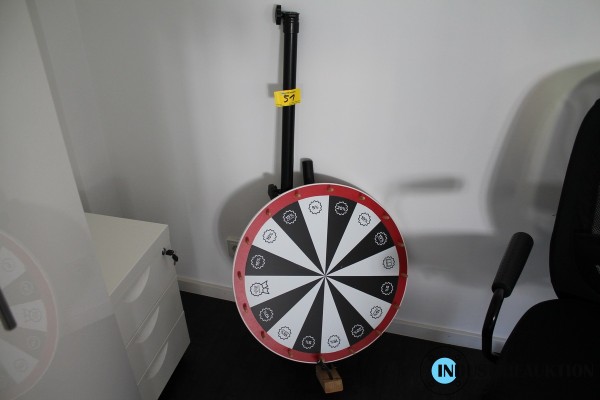 Inhalt Schrank, Glücksrad mit Stativ, pos. Rückwände, Messezubehör