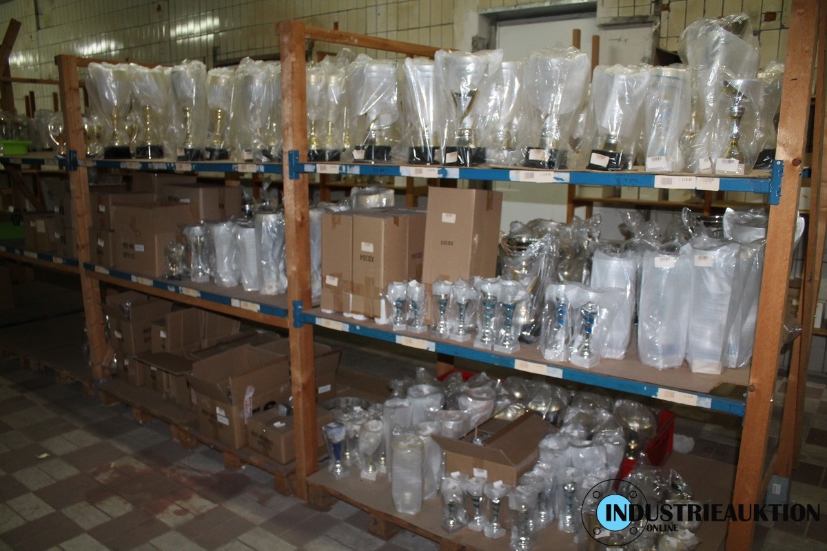 Warenbestand Pokale + Medaillen, EK Wert wird angegeben mit ca. 70.000€, mit ca. 100 lfm Regale