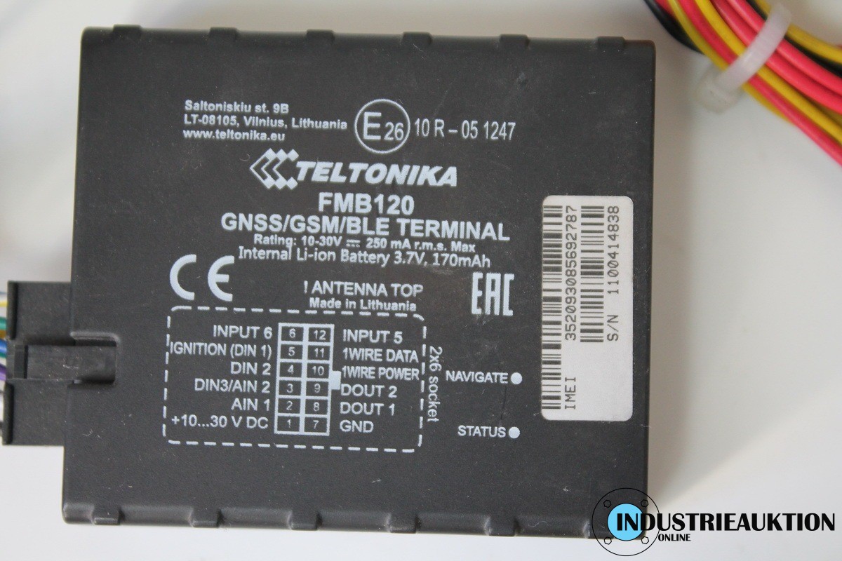 GPS-Tracker TELTONIKA FMB120, 4 St., reduzierter Kabelsatz, siehe Bilder. GSM/GNSS/BLUETOOTH, Interne GSM- und GNSS-Antennen mit hoher Verstärkung, die Gerätekoordinaten und andere nützliche Daten erfassen und über das GSM-Netzwerk an den Server übertragen können.