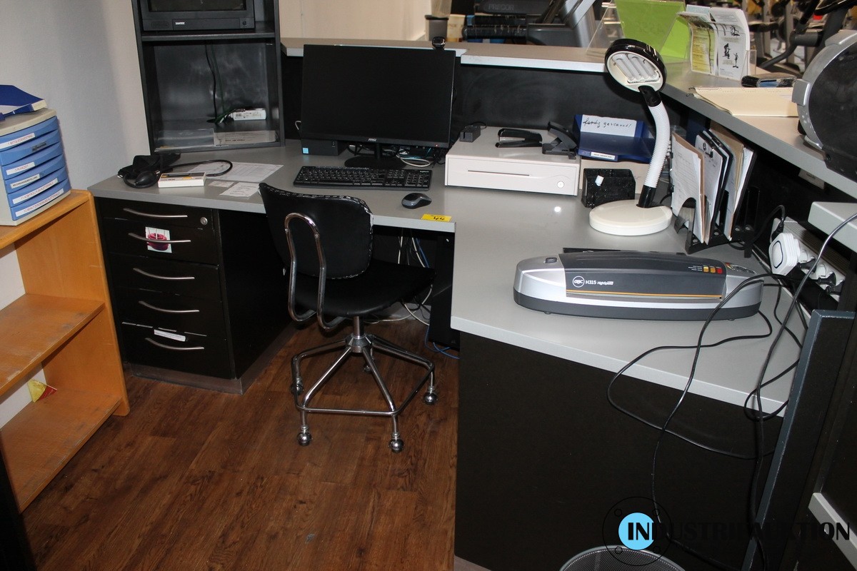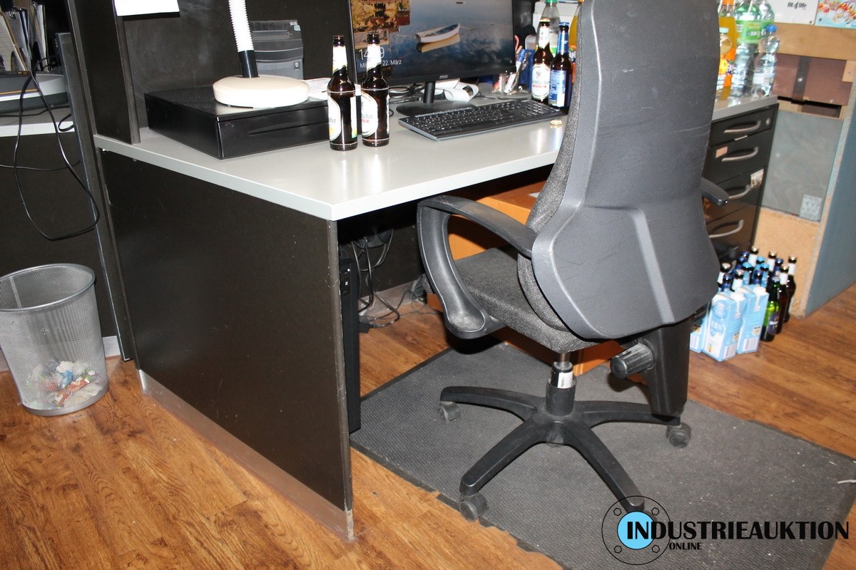Schreibtische 2 St., mit Thekenaufsatz, 2 Bürodrehstühle