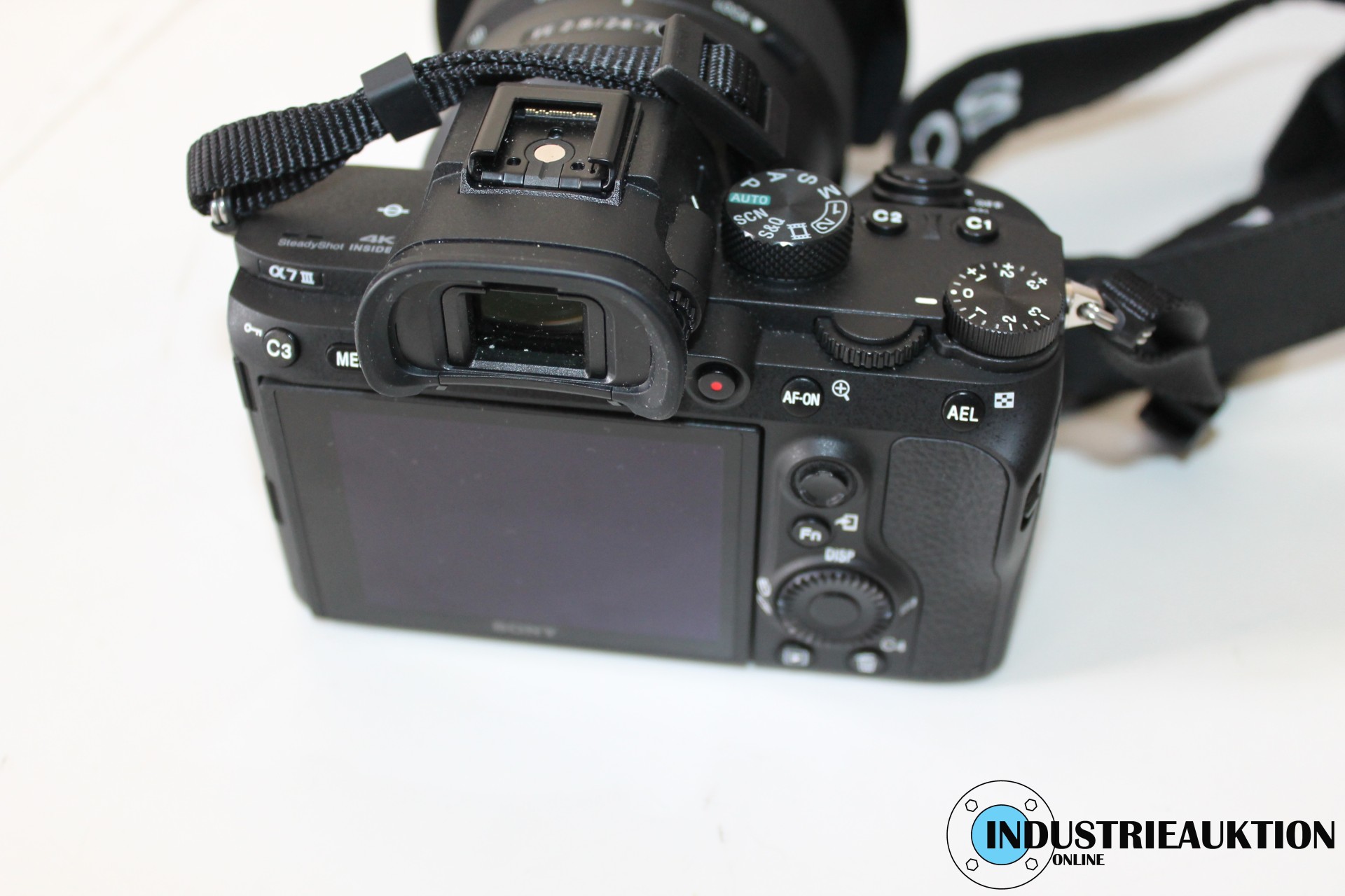 Spiegellose Vollformat-Kamera SONY Alpha 7 Mark III mit Zoomobjektiv SONY FE 24-70 mm 1:2.8 GM, E-Mount Bajonett, Vollformatsensor, 5-Achsen-Bildstabilisator, hochauflösende 4K Videofunktion, 24 Megapixel, Autofokus, Tracking, Serienaufnahmen bis 10 Bilder pro Sekunde, 3 Akkus, 2-fach-Ladegerät, dazu Kameramikrofon RODE Wireless Go II (2 Transmitter, 1 Receiver), Blitz GODOX Speedlite TT350, Leitzahl 36, horizontal und vertikal schwenkbar, Zoomfunktion, NP ca. € 3.500, Kamera neuwertig, 1.258 Auslösungen, aktuelle Firmware, Zubehör vermutlich ungebraucht, Tasche