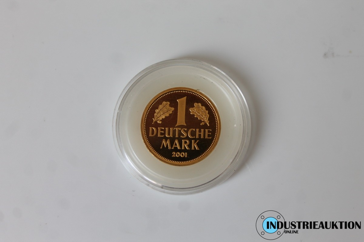 1 DM-Goldmark, 2001, Prägeanstalt G, Gewicht ca. 12 g, ø ca. 22 mm, mit Rechnung