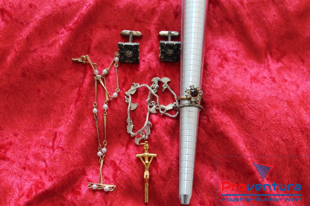 2 Ringe ø ca. 18 u. 17 mm, Kette, Armband, Kreuzanhänger, 1 Paar Manschettenknöpfe