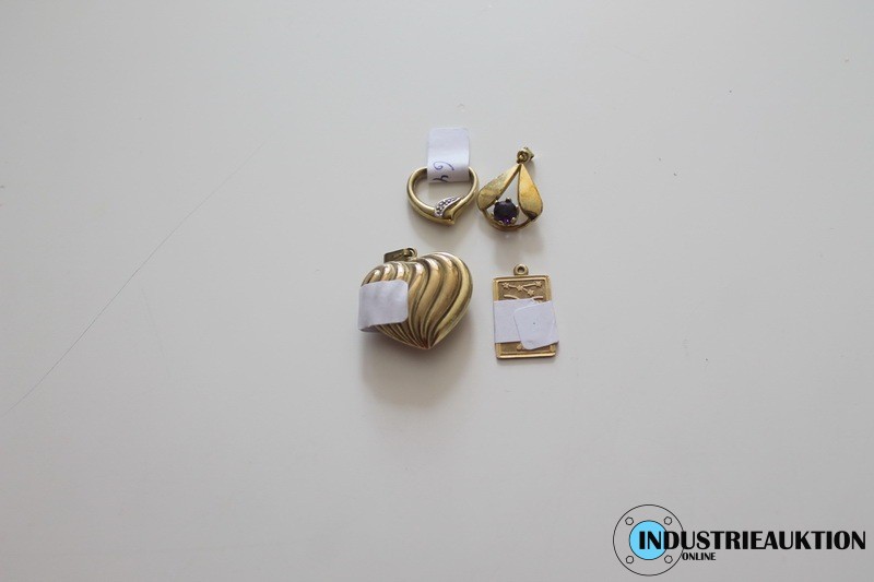 Anhänger 4 St., 1x 333er Gold Gewicht ca. 2,52 g, 1x 585er Gold Gewicht ca. 0,96 g, 1x 333er Gold mit Stein Gewicht ca. 0,94 g, 1x 333er Gold Gewicht ca. 1,48 g