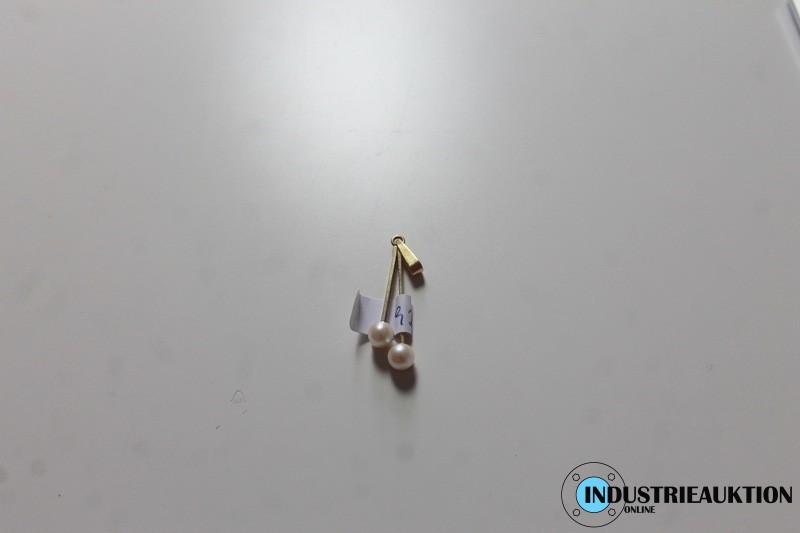 Anhänger 585er Gold, Länge ca. 4 mm, Gewicht ca. 2,28 g, mit 2 Perlen