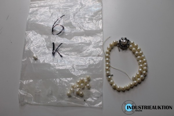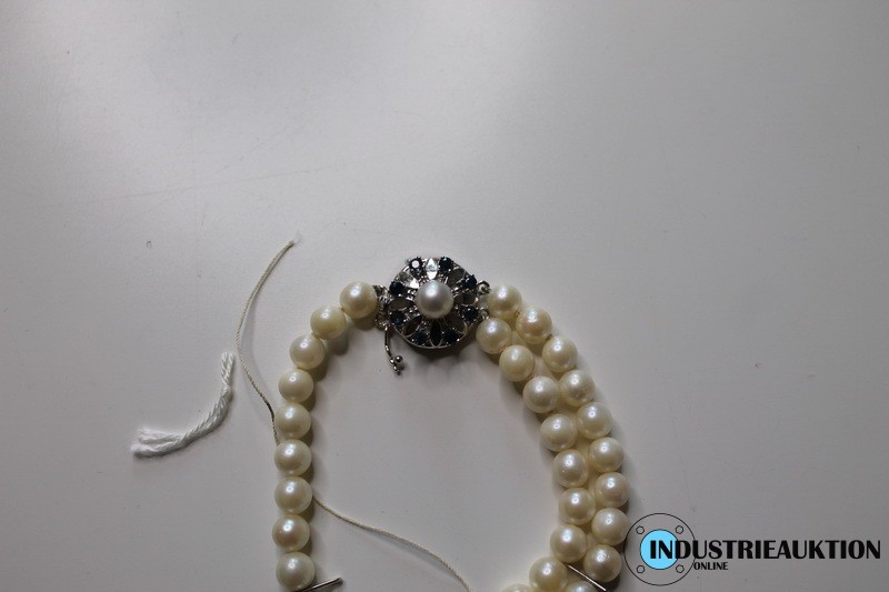 Armband doppelreihig defekt, Verschluss 585er Weißgold mit 8 Saphiren, 1 Perle