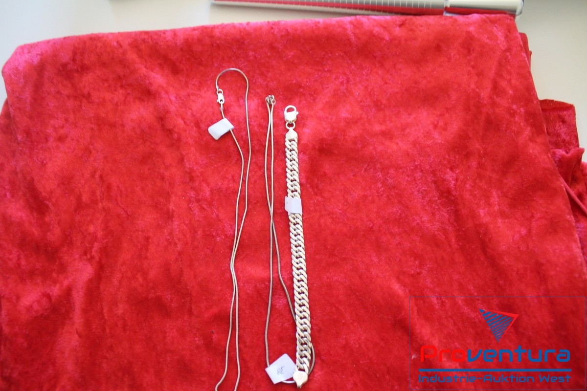 Armband 925er Silber Länge ca. 16 cm, Gewicht ca. 18,52 g, 2 Ketten 925er Silber Länge ca. 46 cm und 36 cm, Gewicht ca. 5,32 g und 4,28 g