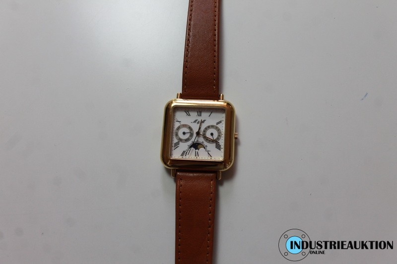 Armbanduhr M&M, Ziffernblatt ca. 25x25 mm, Lederarmband