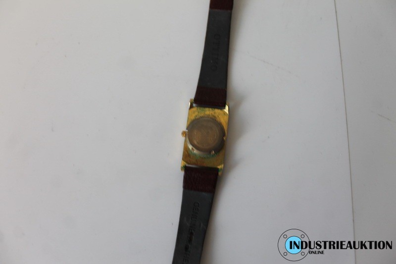 Damenarmbanduhr OTTIMO 18 Karat vergoldet, ø ca. 19 mm, Lederarmband