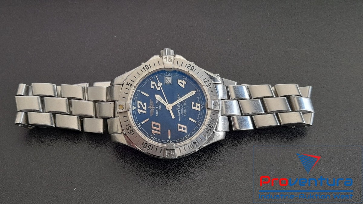 Armbanduhr BREITLING Colt Ocean Automatic, A17350, S/N 167864, aus Nachlass, Original-Metallarmband, blaues Ziffernblatt, ø ca. 37 mm, ohne Box u. Papiere