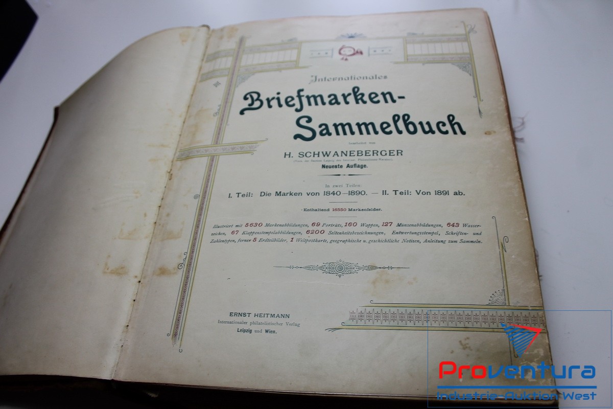 Briefmarkensammelbuch SCHWANEBERGER, Teil I von 1840-1890, Teil II von 1891, teils gut gefüllt