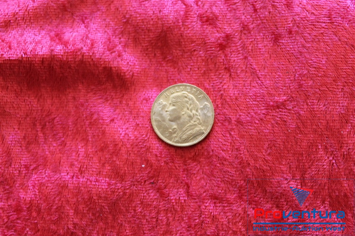 Goldmünze 20 Schweizer Franken 1922, Gewicht ca. 6,44 g