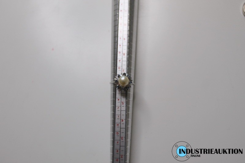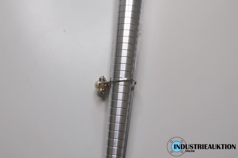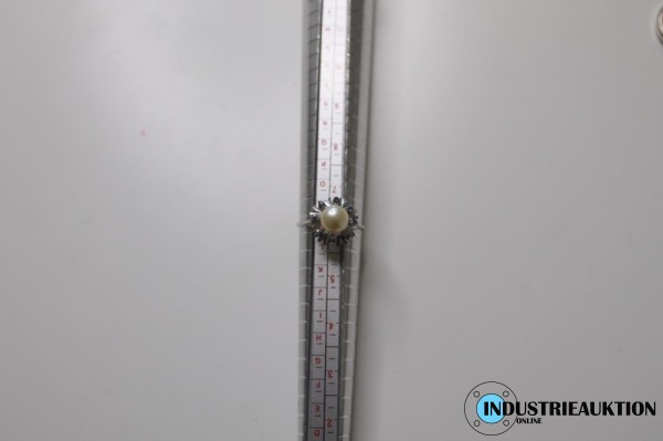 Ring 333er Gold, ø ca. 17 mm, Gewicht ca. 1,24 g, mit Perle u. Steinen