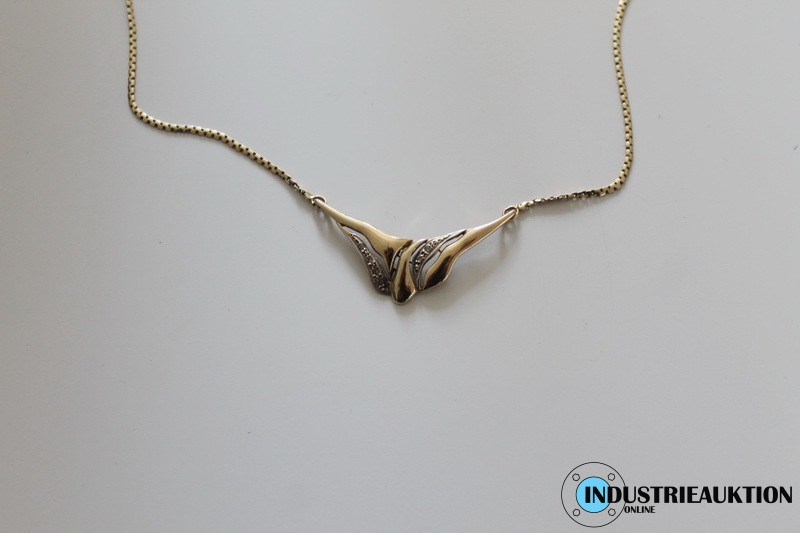 Kette 585er Gold, Länge ca. 38 cm, Gewicht ca. 4,72 g, 5 Steine 1 fehlt