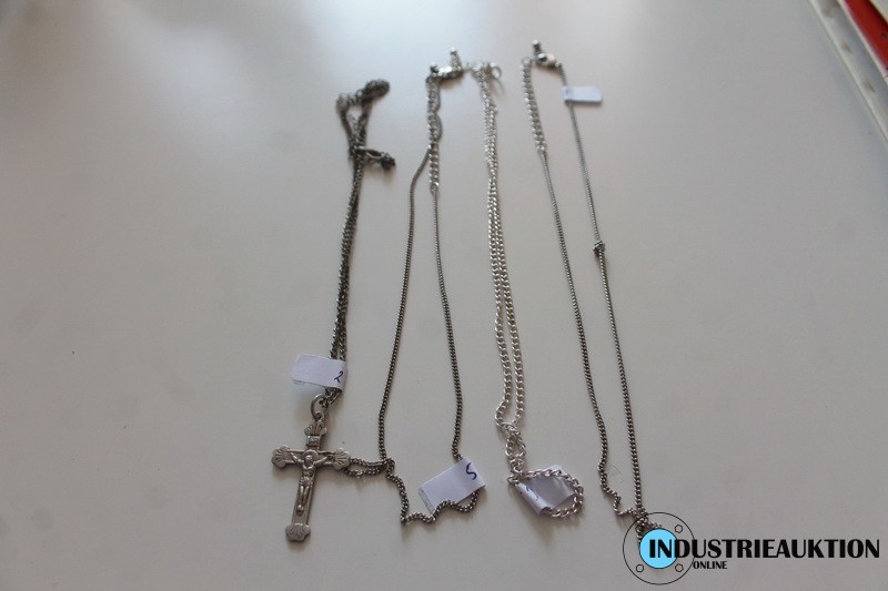 Ketten 4 St., silberfarben, 1x mit Kreuzanhänger
