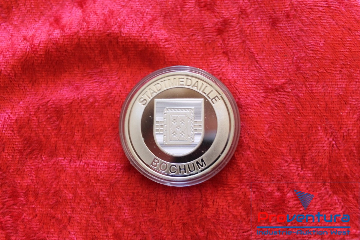 Medaille "Stadtmedaille Bochum" 999er Feinsilber, ø 35 mm, Gewicht 15 g, mattes Relief auf Spiegelglanzfläche, in Schatulle
