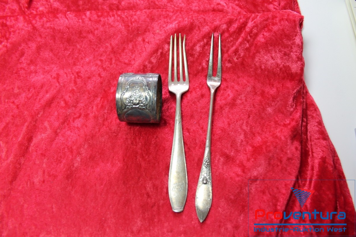 Menügabel WMF 90-30, Aufschnittgabel ARGENTA 40, Serviettenring
