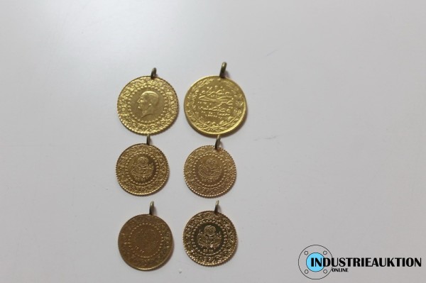 Münzanhänger 21 ct, Gewicht ca. 18,1 g, 6 St.