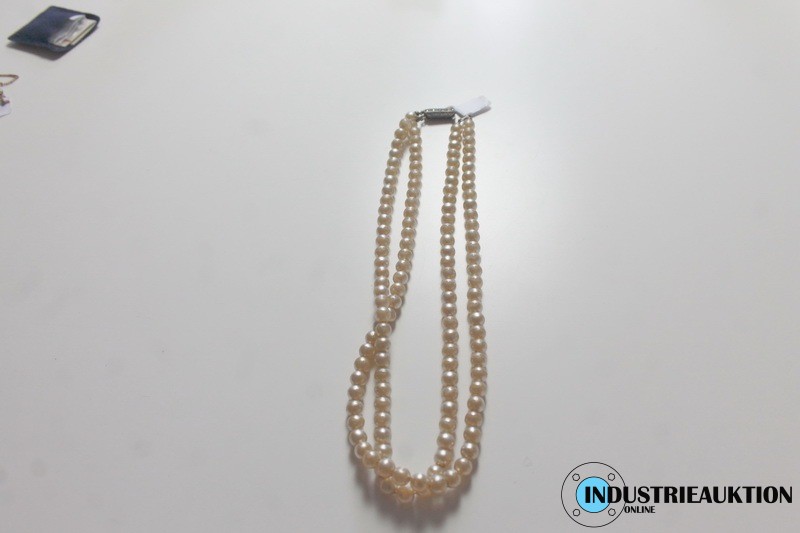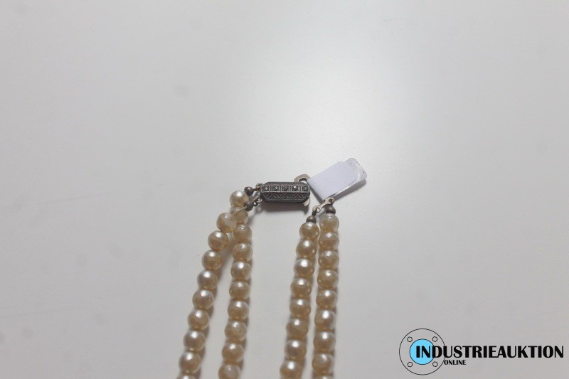Perlenkette, Länge ca. 38 cm, 2-reihig, Verschluss 800er Silber mit Steinen