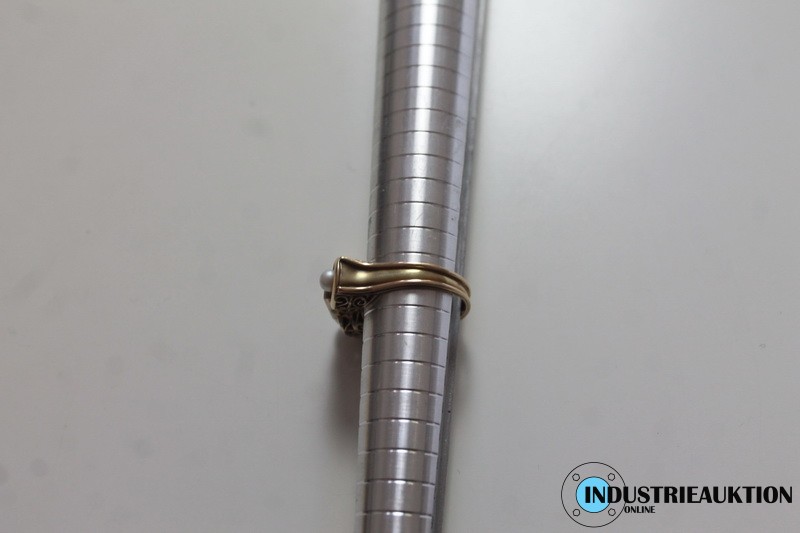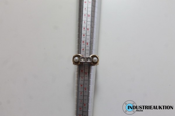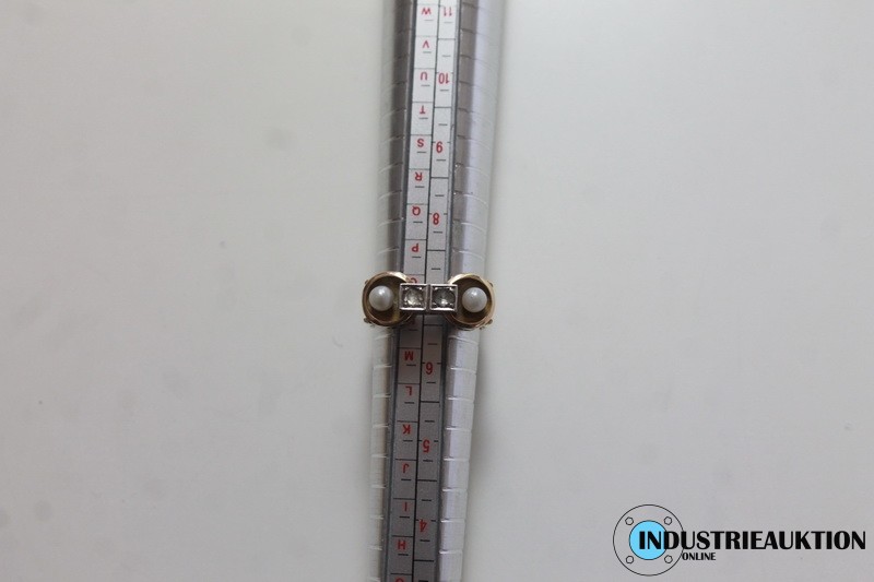 Ring 585er Gold ø ca. 18 mm, Gewicht ca. 4,10 g, mit 2 Diamanten und 2 Perlen