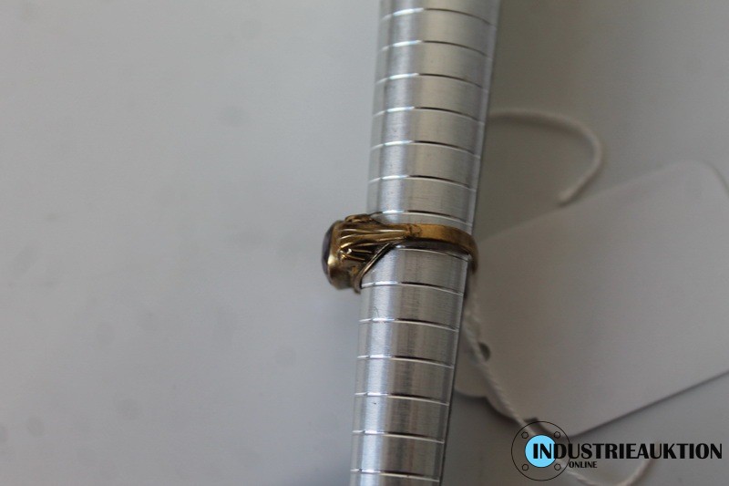 Ring 333er Gold, ø ca. 18 mm, Gewicht ca. 2,3 g, etwas verbogen, mit Stein