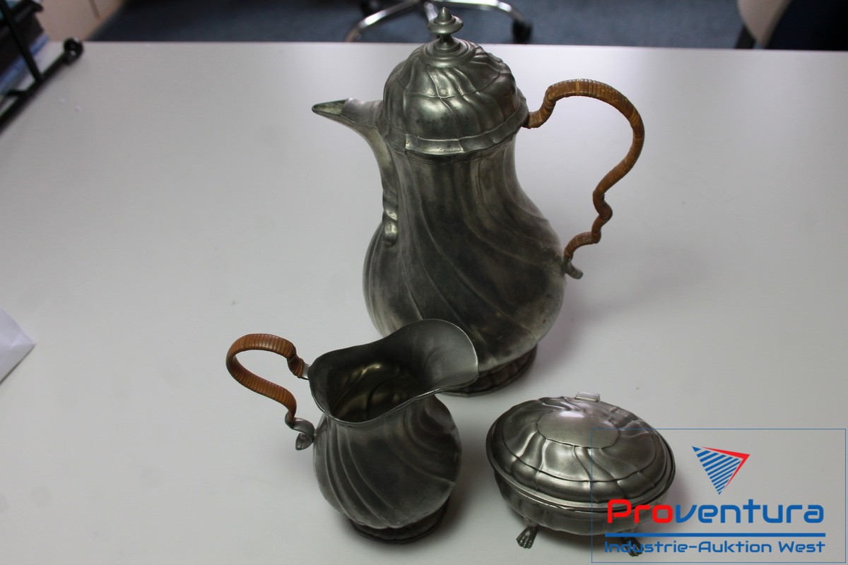 Zinn-Kanne L. Mory, Zuckerdose, Milchkännchen, Gewicht ca. 1.430 g