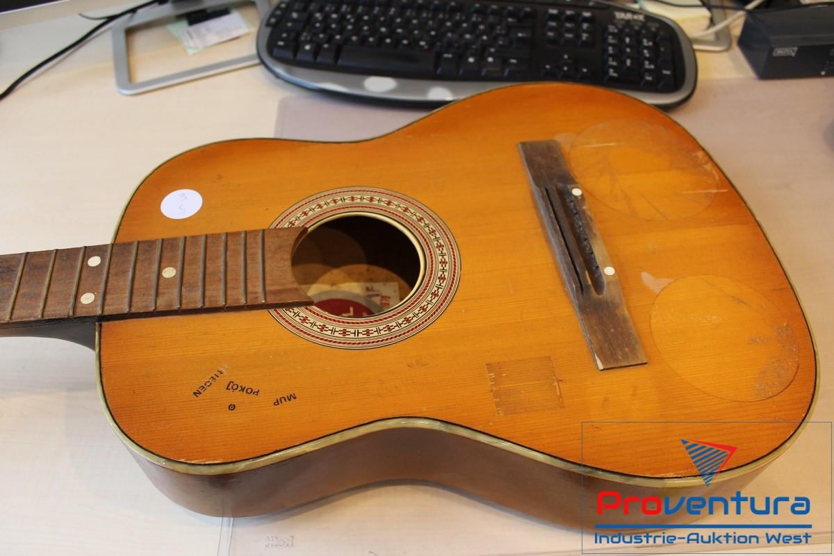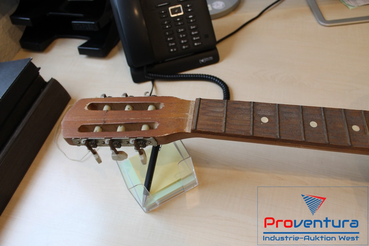 Gitarre, Saiten fehlen, Holz am Kopf gerissen